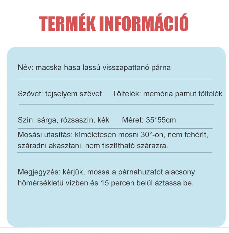 Macska hasa lassú visszapattanó párna