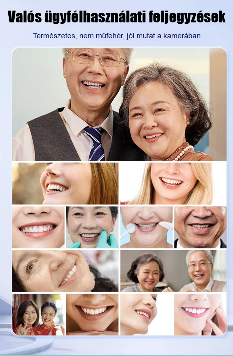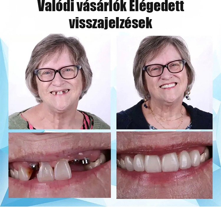 Biztonságos és megbízható. Olyan kényelmes és természetes érzés, mint a valódi fogak – még kezdőknek is 10 másodperc alatt. 14 napos ingyenes próbaidőszakot kínálunk, teljes visszatérítéssel, ha nem elégedett. Ingyenes csere két éven belül.