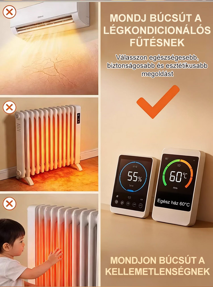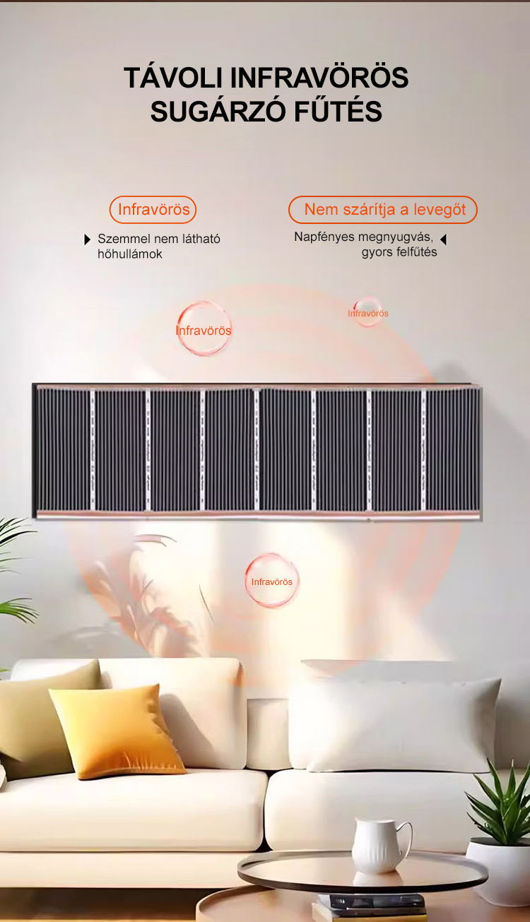 Csak ragassza fel a falra, és élvezze a kellemes meleget 5 percen belül. Vízálló kialakítása miatt a fürdőszobába is tökéletes. Hatékonyabb, mint a klíma, és olcsóbb, mint a központi fűtés – professzionális technológia az Ön otthonába.