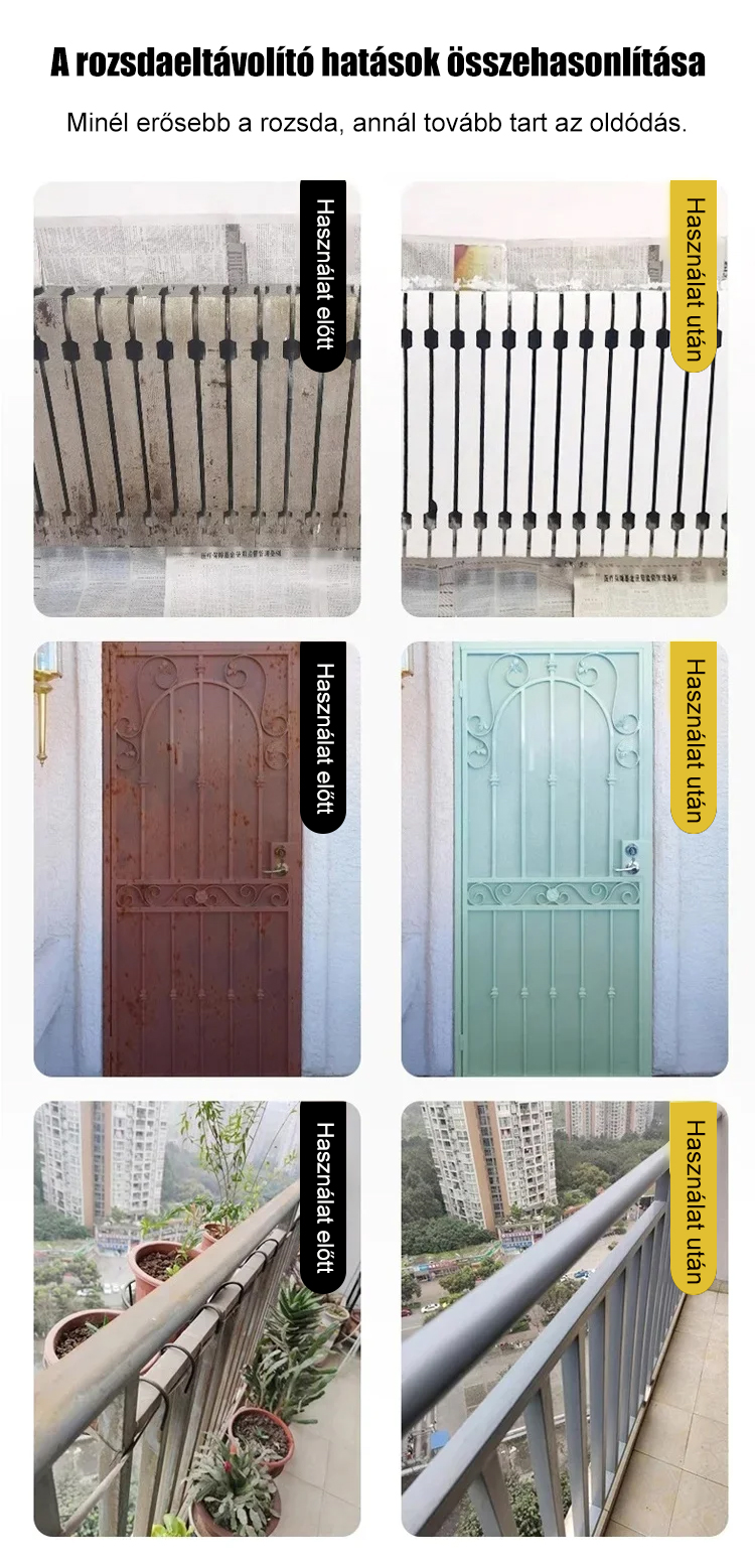 ⏱️ Gyors: 5 perces reakcióidő. 🛡️ Biztonságos: Nem károsítja a fémfelületet. 🚗 Univerzális: Autóhoz, kerítéshez, szerszámokhoz. Kattintson és újítsa fel fémtárgyait könnyedén! 👇